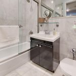 | Brick, solar-roofed, Mid-Century co-op perches high above NYC Harbor near the free ferry to Manhattan (<15 min walk, 5 min bus). Double-exposure unit on 1st floor (above ground floor lobby) features full view of passing ships with half-year of Manhattan skyline/half-year verdancy. Apt. WOW’s: Large living room with built-in bookshelves, stainless eat-in kitchen with 3 sides of handsome cabinetry, entry large enough for a dining area, double-king bedroom, stunning full bath, 8′ ceilings with crown molding & burnished wood floors. The equivalent of 11 closets includes a wondrous Walk-In with integrated organization compartments. WHO COULD ASK MORE? But there is! The board just OK’d RIGHT TO RENT after 3 years’ residency! Building features: library; party, bike, mail & secure-package rooms; 2 laundries, vast storage; 2 elevators & 4 staircases; handicap-accessible via side driveway. Wait-list for parking or ample surrounding street parking (no alternate side). Location near waterfront promenade & parks, gourmet dining, outlet shopping, baseball stadium, Borough Hall, County Court & Precinct; NYC Public Library, St. George Theater, P.S. 59 The Harbor School & Curtis High School. An easy boat ride away from Manhattan, yet a waterfront world apart. |